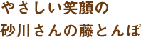 静岡の農業の鉄人、砂川さん。写真でも分かるように笑顔が似合うやさしい農家さんです。それだけでなく、環境にまで気を配った栽培方法を実践しています。地元をこよなく愛し、おいしいお米を作っています。